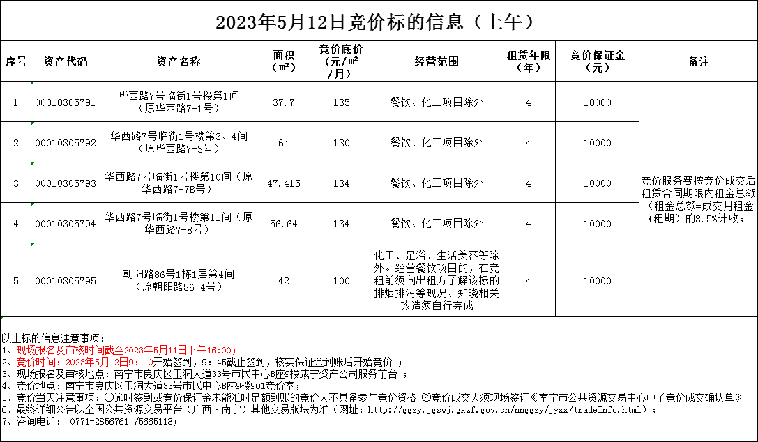2023年5月12日競(jìng)價(jià)標(biāo)的信息