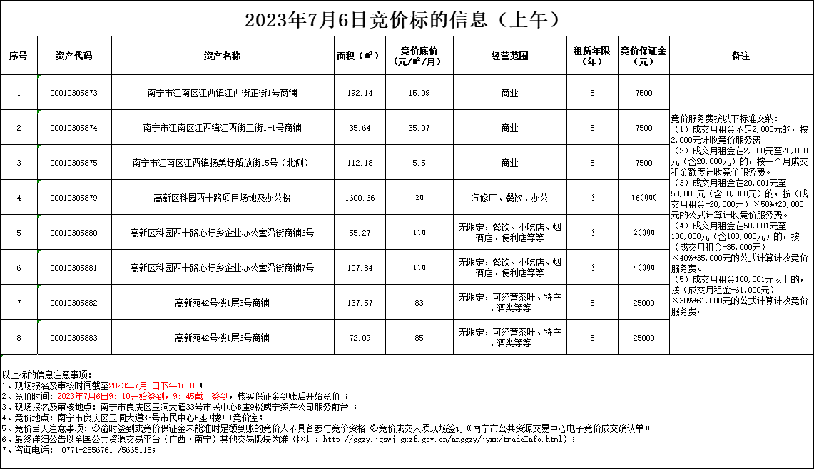 2023年7月6日競價標(biāo)的信息