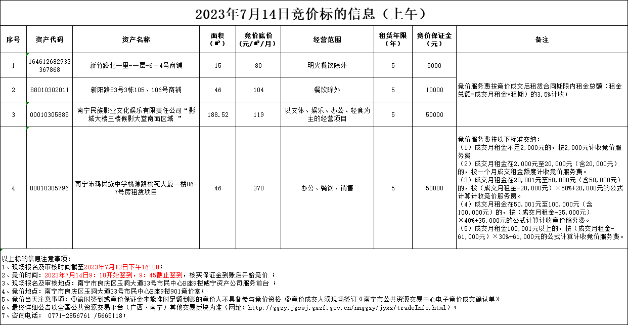 2023年7月14日競價標的信息