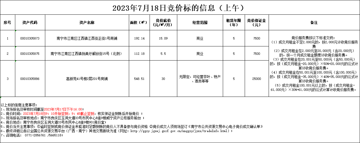 2023年7月18日競(jìng)價(jià)標(biāo)的信息