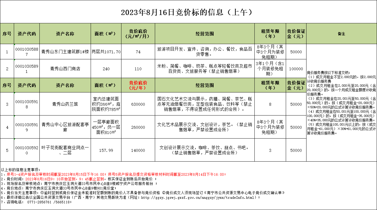 2023年8月16日競(jìng)價(jià)標(biāo)的信息