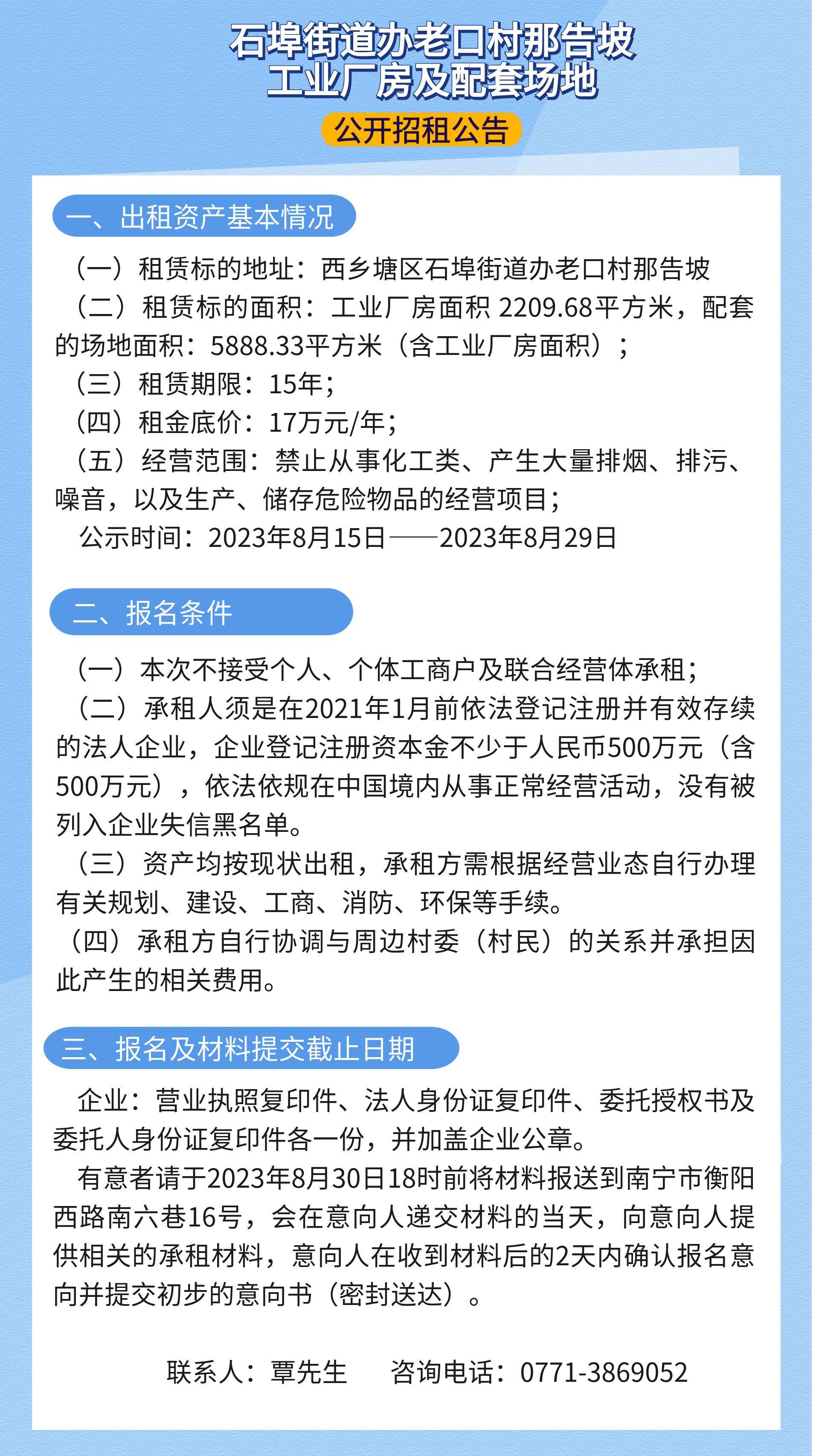 【招租公告】石埠街道辦老口村那告坡工業(yè)廠(chǎng)房及配套場(chǎng)地