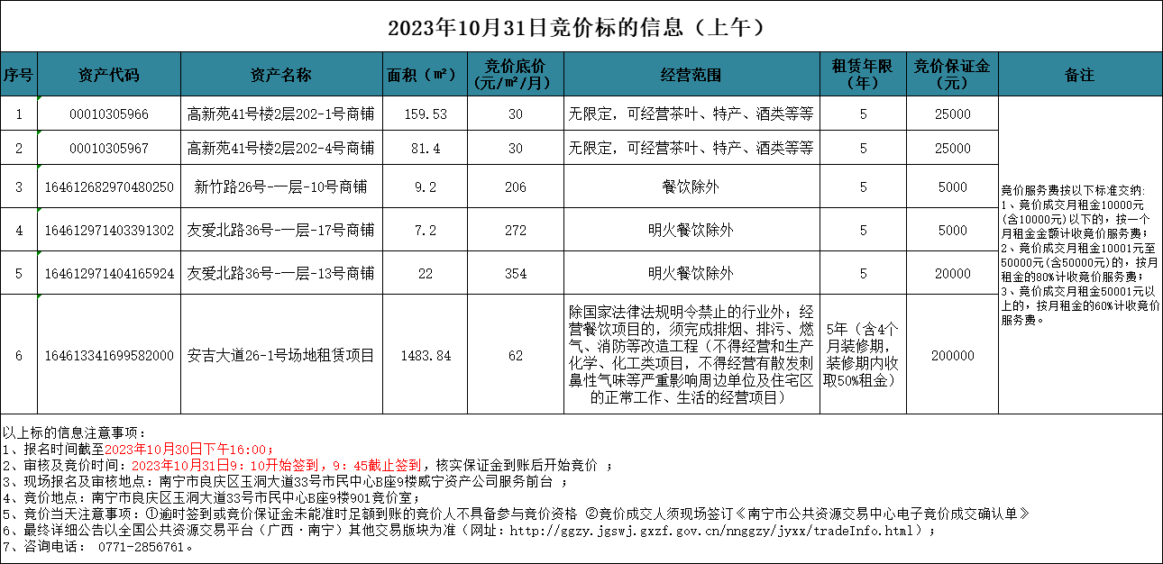 2023年10月31日競(jìng)價(jià)標(biāo)的信息