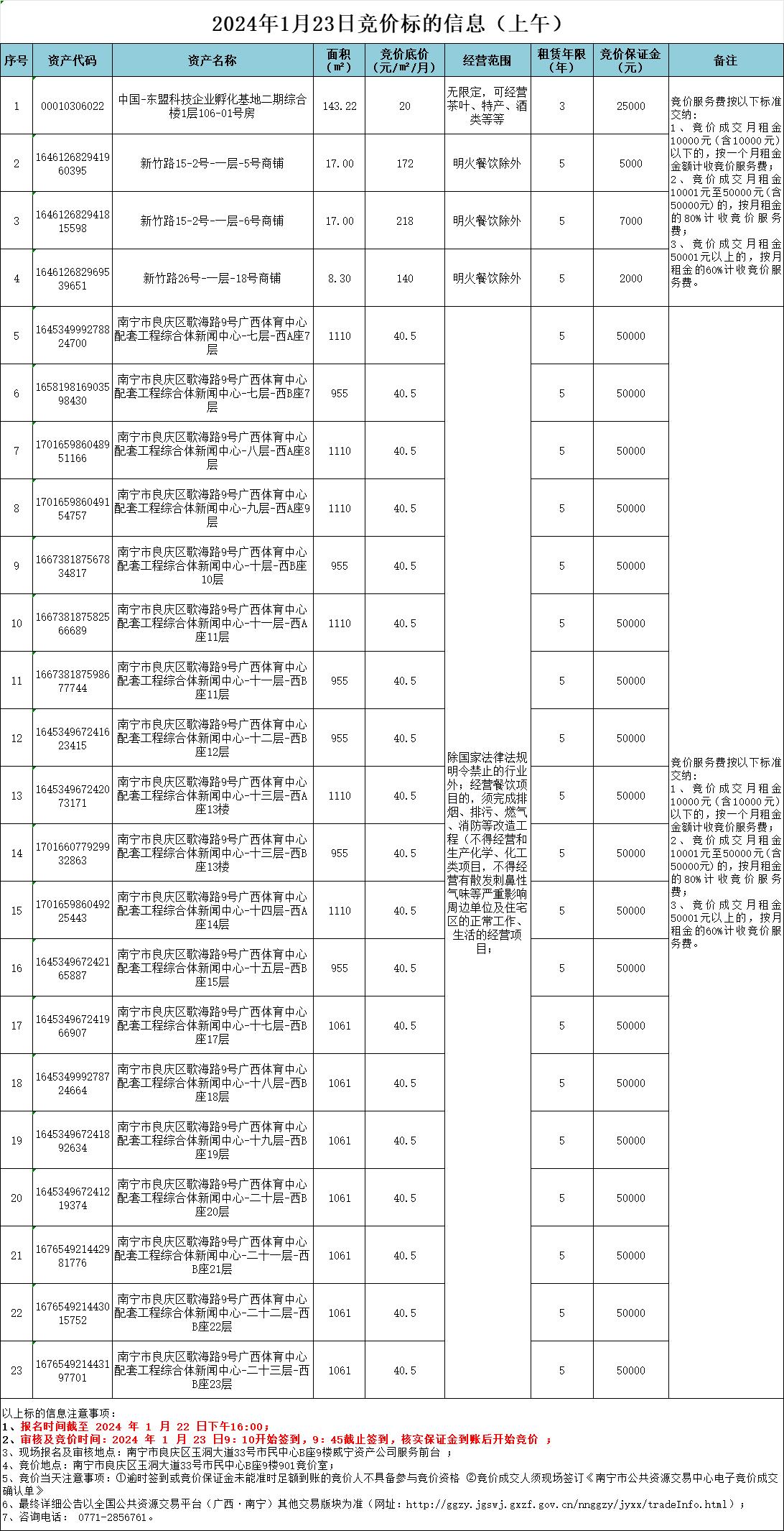 2024年1月23日競(jìng)價(jià)標(biāo)的信息