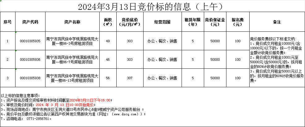 2024年3月13日競價標(biāo)的信息(線上競價)