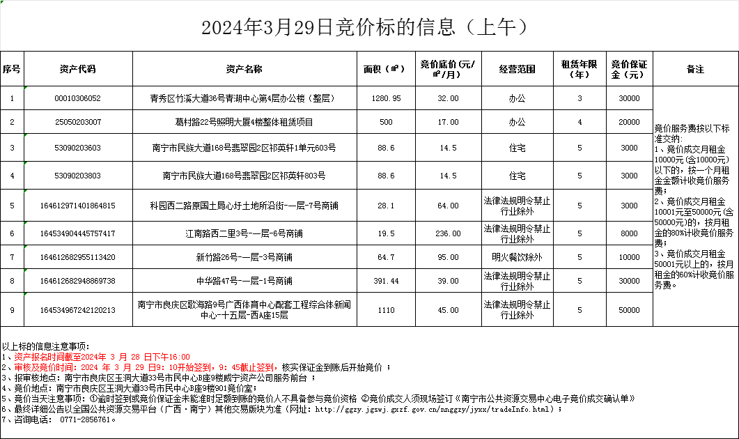 2024年3月29日競價標(biāo)的信息(現(xiàn)場競價)