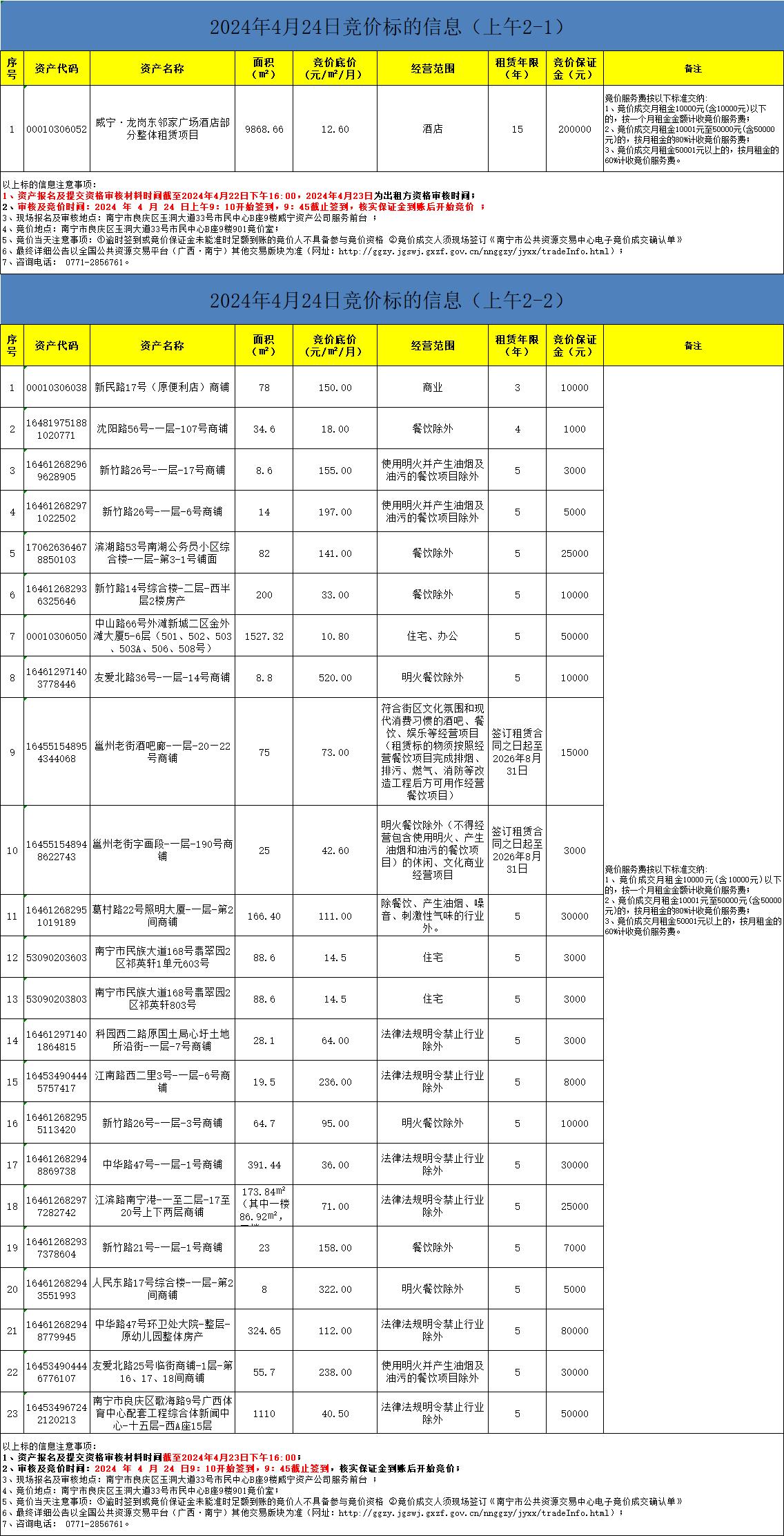 2024年4月24日競(jìng)價(jià)標(biāo)的信息(現(xiàn)場(chǎng)競(jìng)價(jià))
