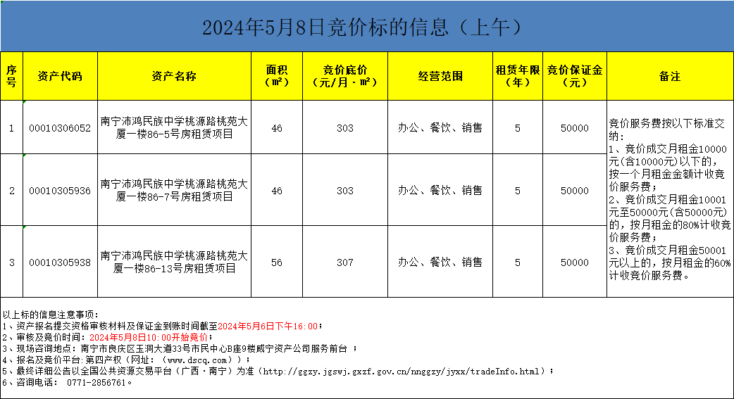 2024年5月8日競價標的信息(線上競價)