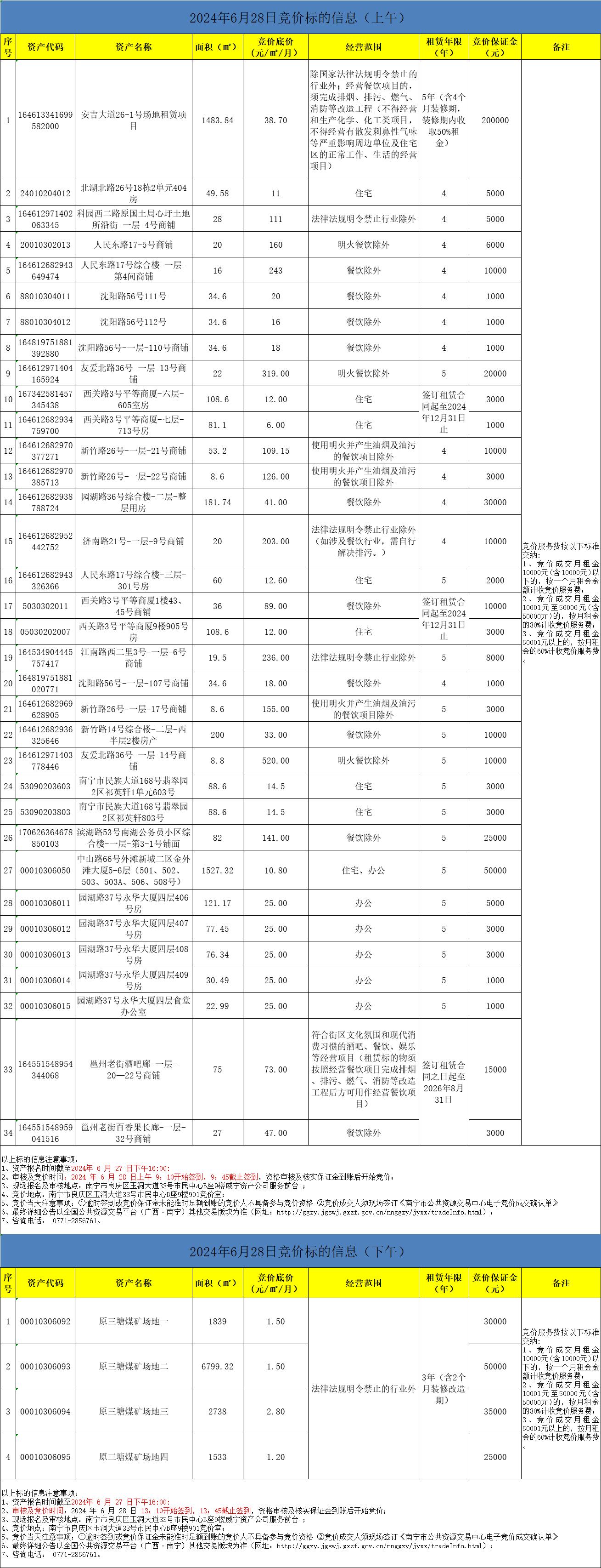 2024年6月28日競價標的信息(現(xiàn)場競價)