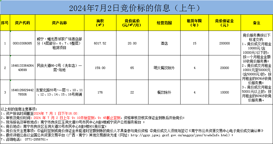 2024年7月2日競價標(biāo)的信息(現(xiàn)場競價)
