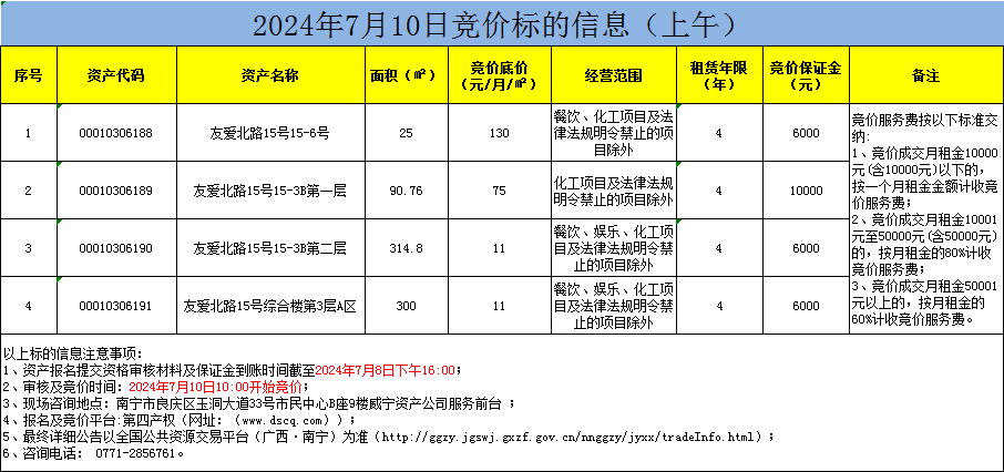 2024年7月10日競價標(biāo)的信息(線上競價)