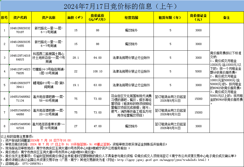 2024年7月17日競(jìng)價(jià)標(biāo)的信息(現(xiàn)場(chǎng)競(jìng)價(jià))
