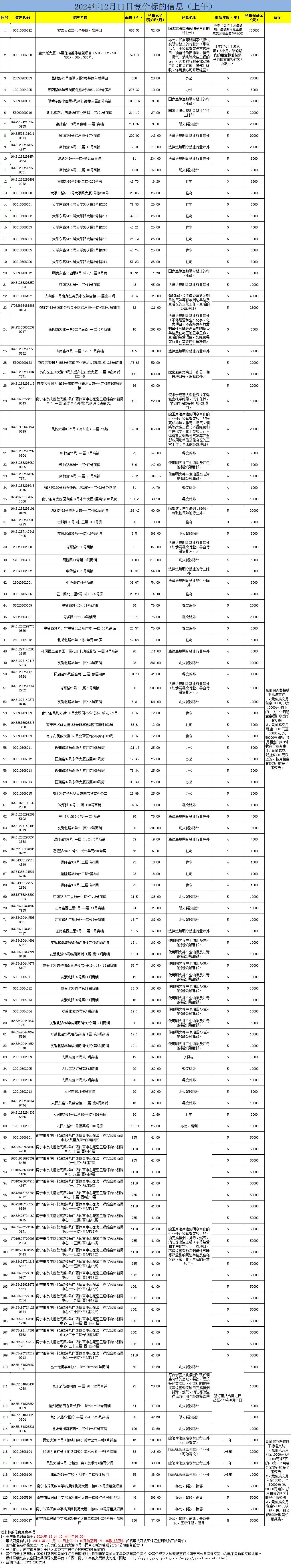 2024年12月11日競(jìng)價(jià)標(biāo)的信息(現(xiàn)場(chǎng)競(jìng)價(jià))