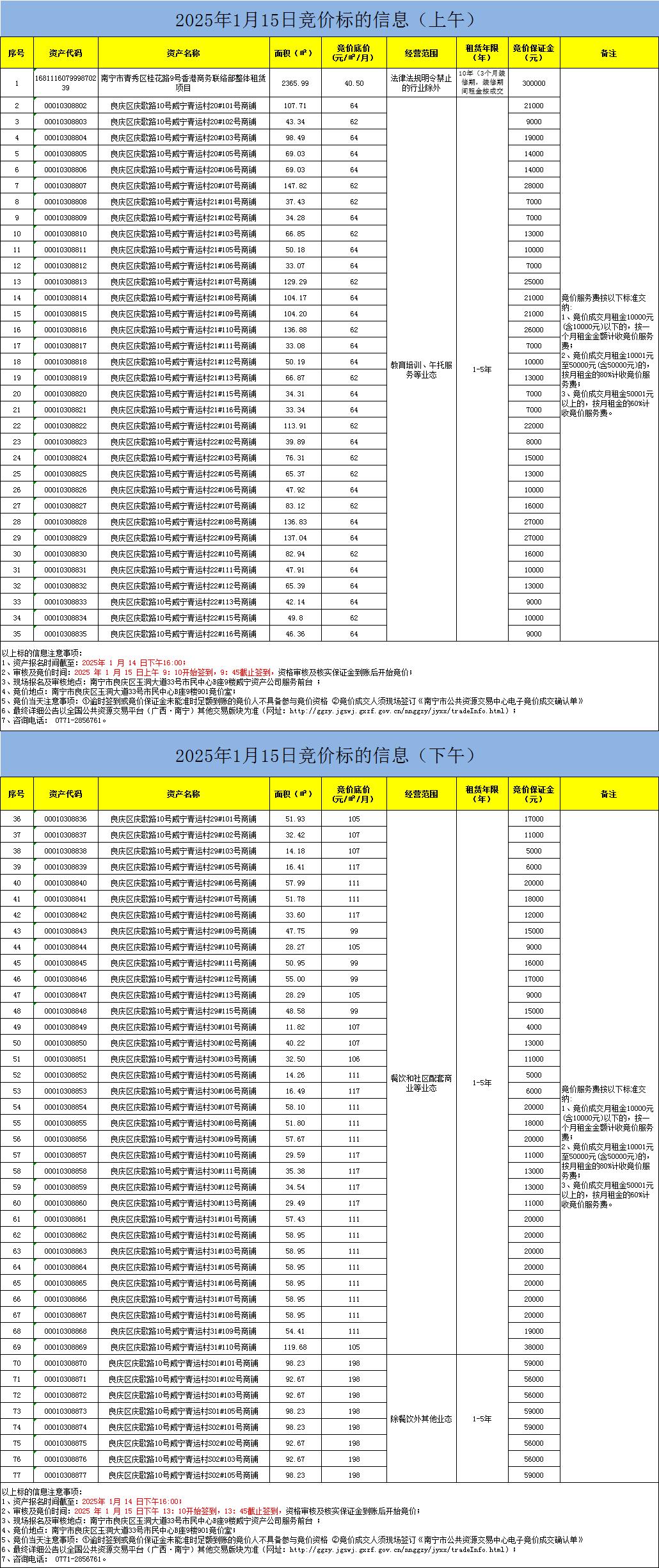 2025年1月15日競價標的信息(現(xiàn)場競價)