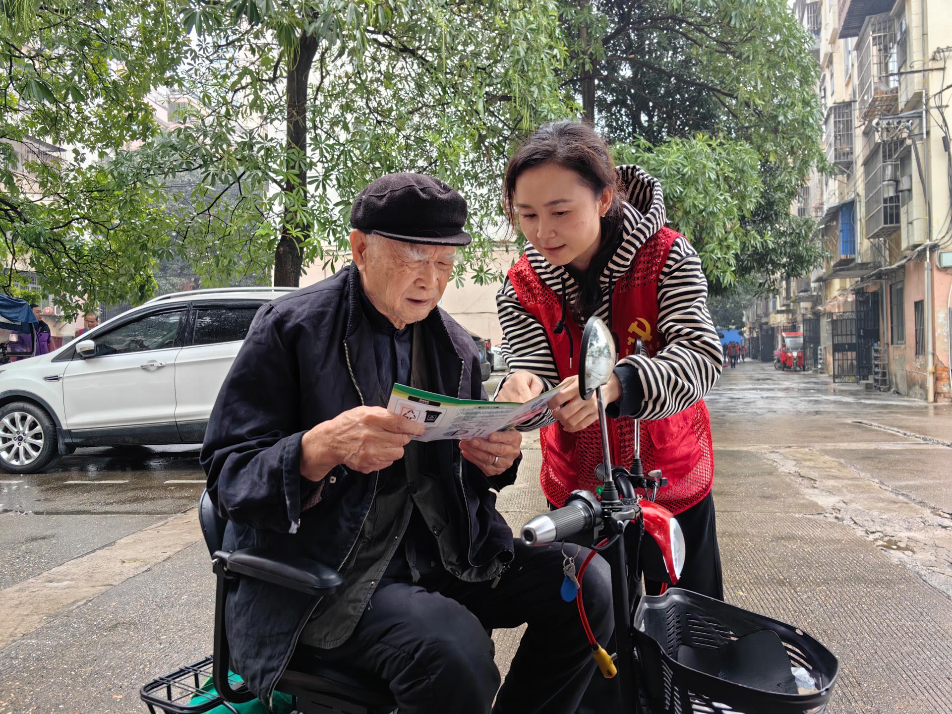 廖麗萍在飛鳳市場生活垃圾分類宣傳教育陣地宣講