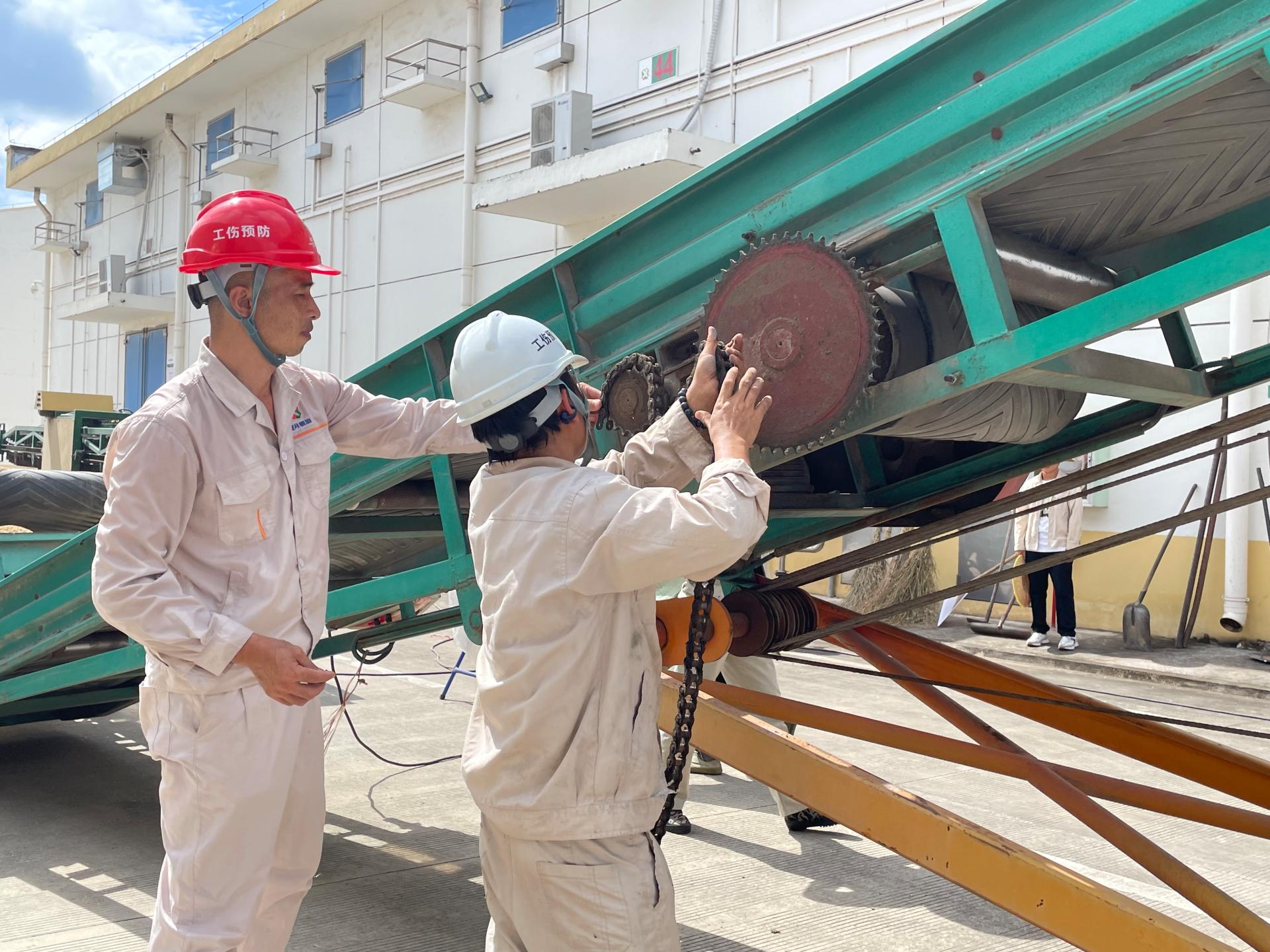 唐國強(qiáng)和同事們調(diào)整入糧設(shè)備位置
