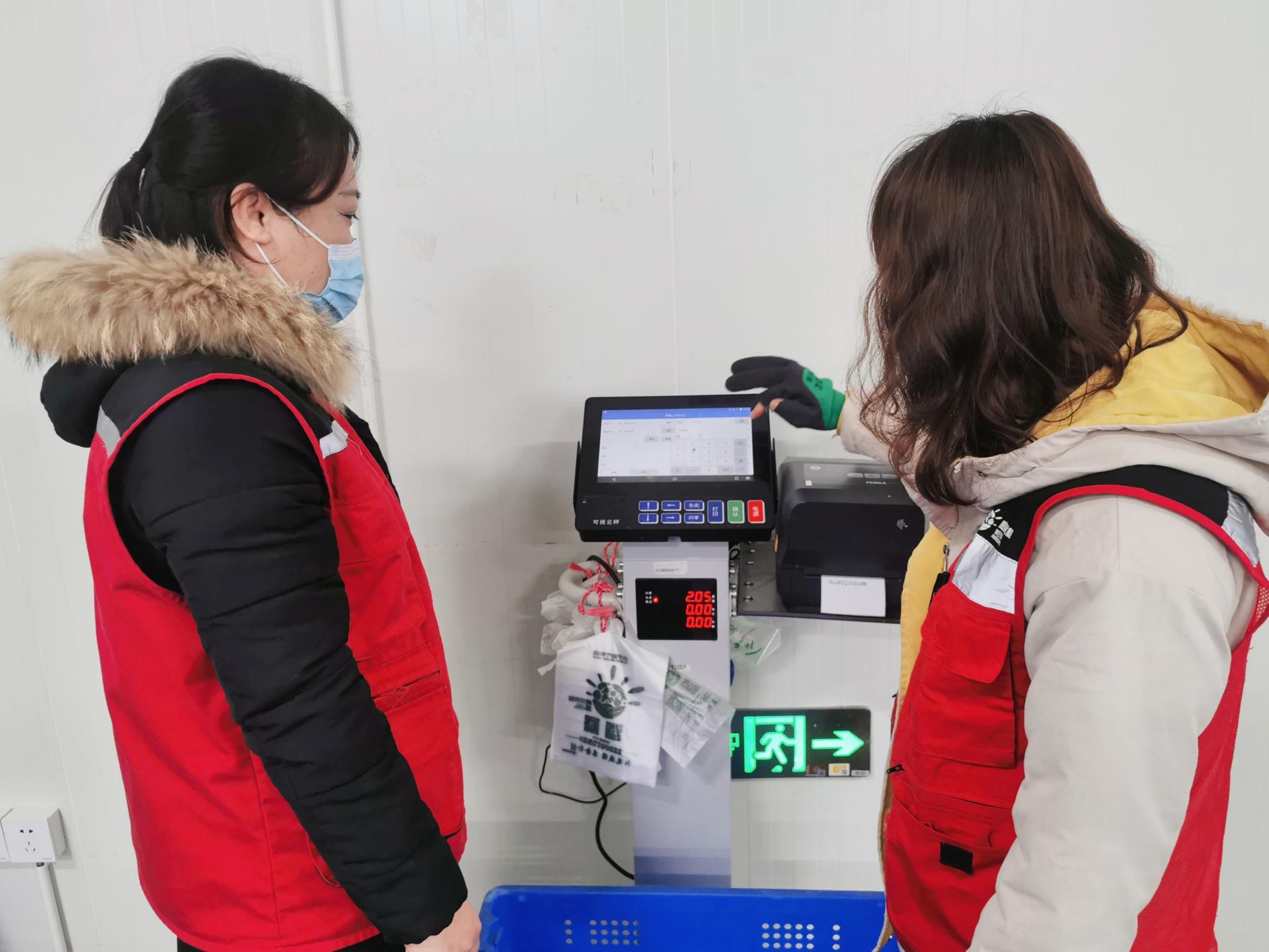 南寧的夏日,室外溫度常年保持在38度左右,而五象配送基地低溫冷庫內(nèi)的溫濕度計(jì),赫然顯示著庫內(nèi)溫度為零下18攝氏度,“冰火交替”時刻考驗(yàn)著每一位分揀“娘子軍”。每日,她們要穿著厚重的防凍棉襖,反復(fù)穿梭于內(nèi)外溫差最高達(dá)40度的高溫冷庫、低溫冷庫、常溫庫等多個作業(yè)區(qū)域。在食材分揀過程中,智能掃碼、電子稱重、打印貼簽、分類分裝、叉車運(yùn)送、庫位投線、整齊碼放、集中復(fù)核……她們不厭其煩地重復(fù)同樣的動作,來來回回裝卸貨物幾十趟,有時大汗淋淋,有時寒氣刺骨,卻始終堅(jiān)持認(rèn)真細(xì)致地完成學(xué)校食材分揀任務(wù)。