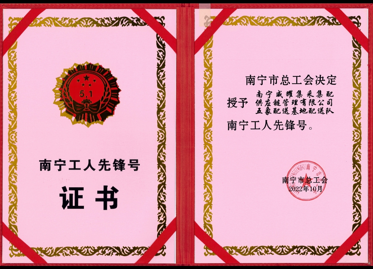 就是這樣一支隊伍,他們以基地為家,始終把校園食材“按時送達”放在第一位,勤勤懇懇,積極進取,以高度的責任感和使命感對待各項工作。在2022年南寧工人先鋒號評選中,他們脫穎而出,摘得榮譽。