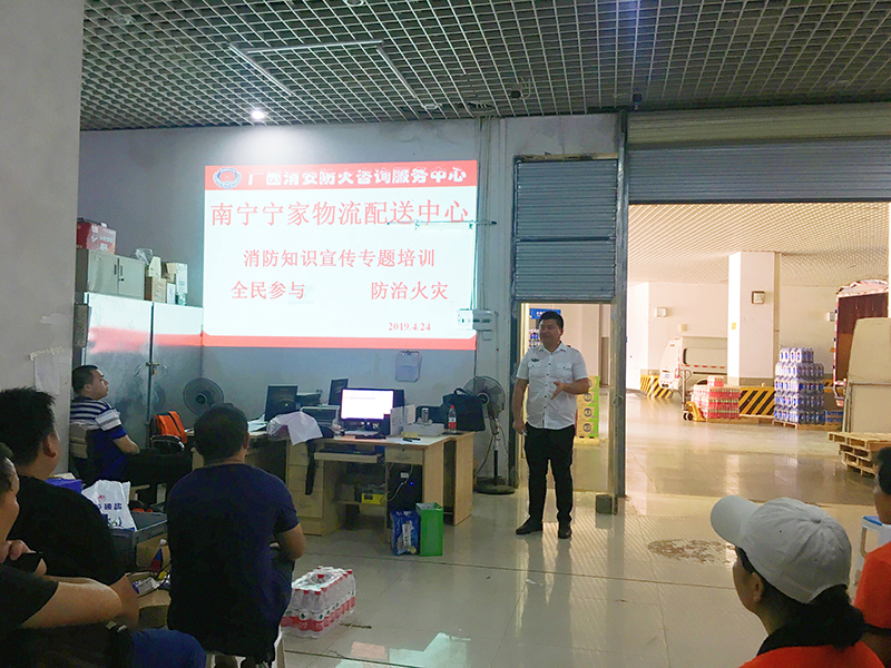 2019年4月25日,威寧捷信公司邀請(qǐng)廣西消安防火咨詢服務(wù)中心的培訓(xùn)教官到物流配送中心開展消防安全知識(shí)專題培訓(xùn),進(jìn)一步提升物流配送中心員工消防安全意識(shí)和消防安全管理水平。