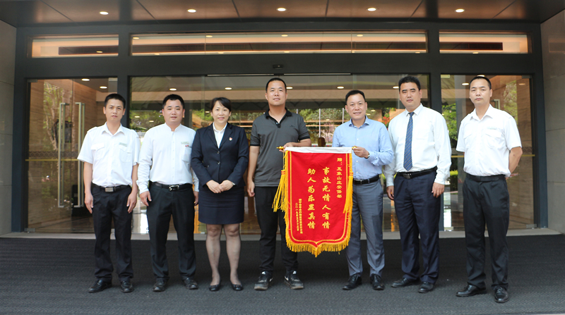 2019月5月17日,一面寫著“事故無情人有情,助人為樂顯真情”的錦旗被送到五象山莊安保部,贈(zèng)送錦旗的是南寧市平樂行物流有限公司的負(fù)責(zé)人,為向安保部同事幫助該公司撲滅自燃車輛的英勇行為表達(dá)敬意及感謝。