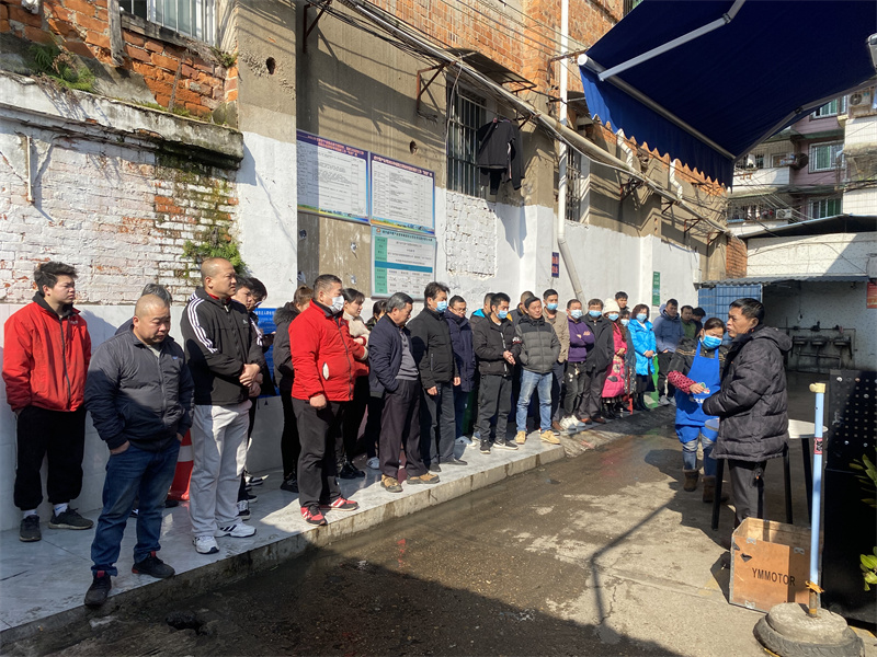 活動現(xiàn)場 為加強(qiáng)公司出租資產(chǎn)安全管理工作, 2022年2月23日,威寧資產(chǎn)公司在中華路2號電動車配件市場組織全體租戶及市場管理人員開展防范電器火災(zāi)教育活動。