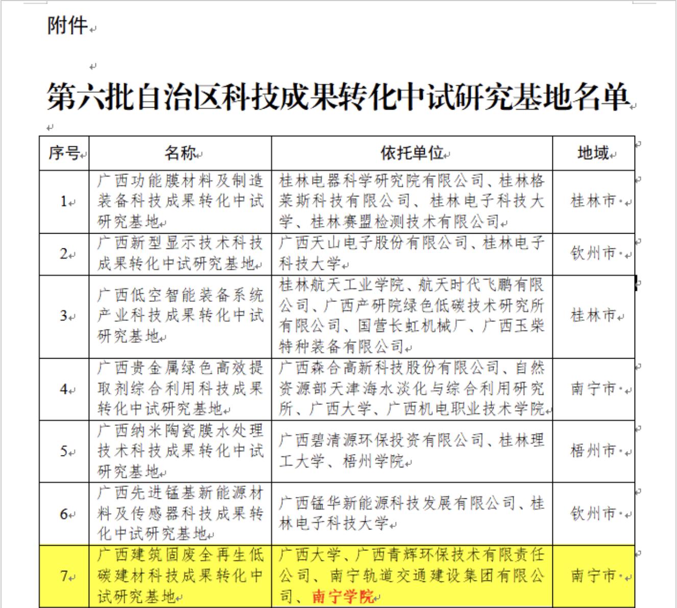 南寧學(xué)院成功獲批第六批自治區(qū)科技成果轉(zhuǎn)化中試研究基地