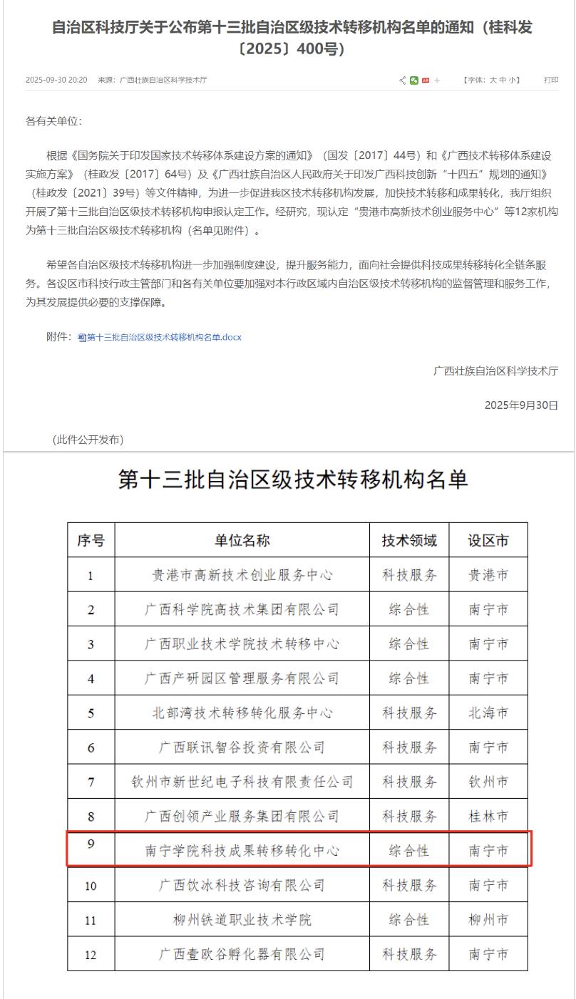 南寧學(xué)院獲批自治區(qū)級技術(shù)轉(zhuǎn)移機構(gòu)
