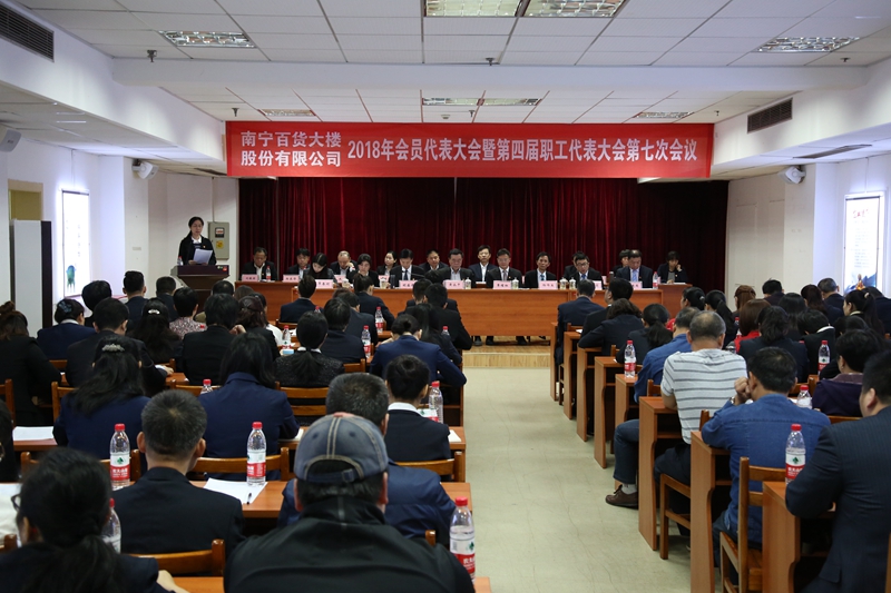2018年4月8日,南寧百貨大樓公司召開2018年會員代表大會暨第四屆職工代表大會第七次會議。大會分為兩個(gè)階段,第一階段為會員代表大會,第二階段為職工代表大會。