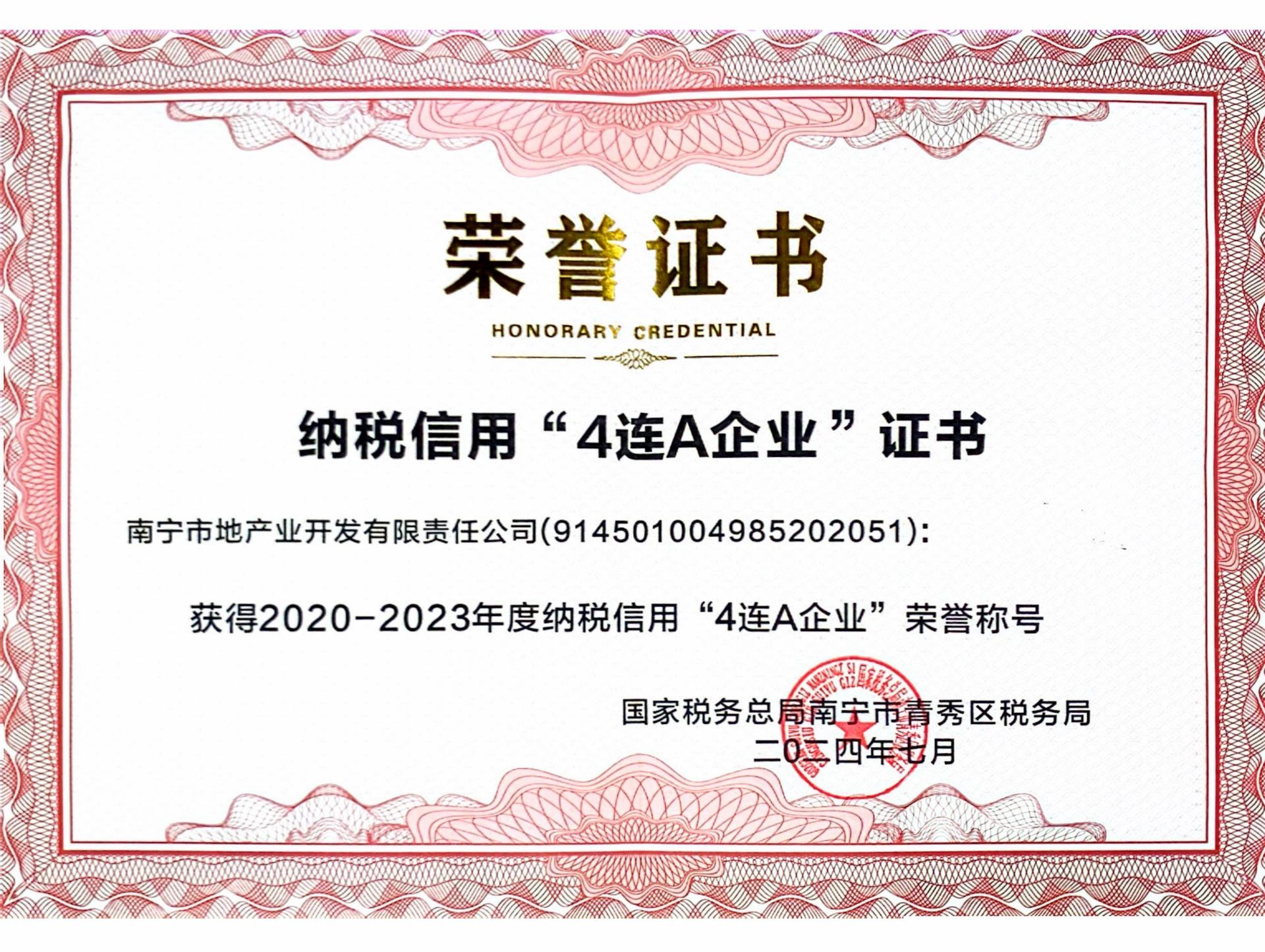 喜報(bào)!地產(chǎn)業(yè)公司榮獲2020-2023年度納稅信用“4連A企業(yè)”榮譽(yù)稱號(hào)