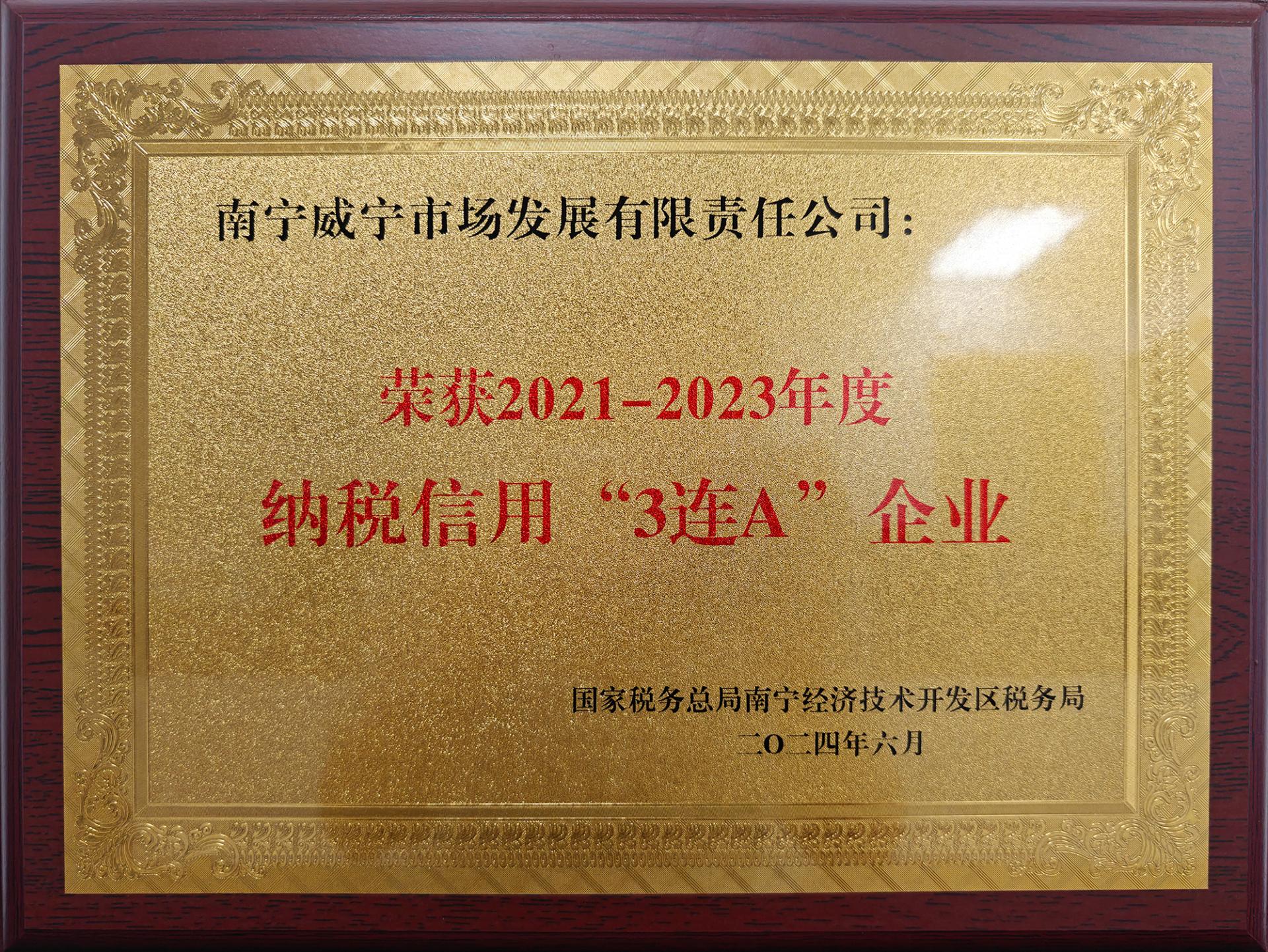 喜訊!威寧市場公司榮獲納稅信用“3連A企業(yè)”榮譽(yù)稱號(hào)