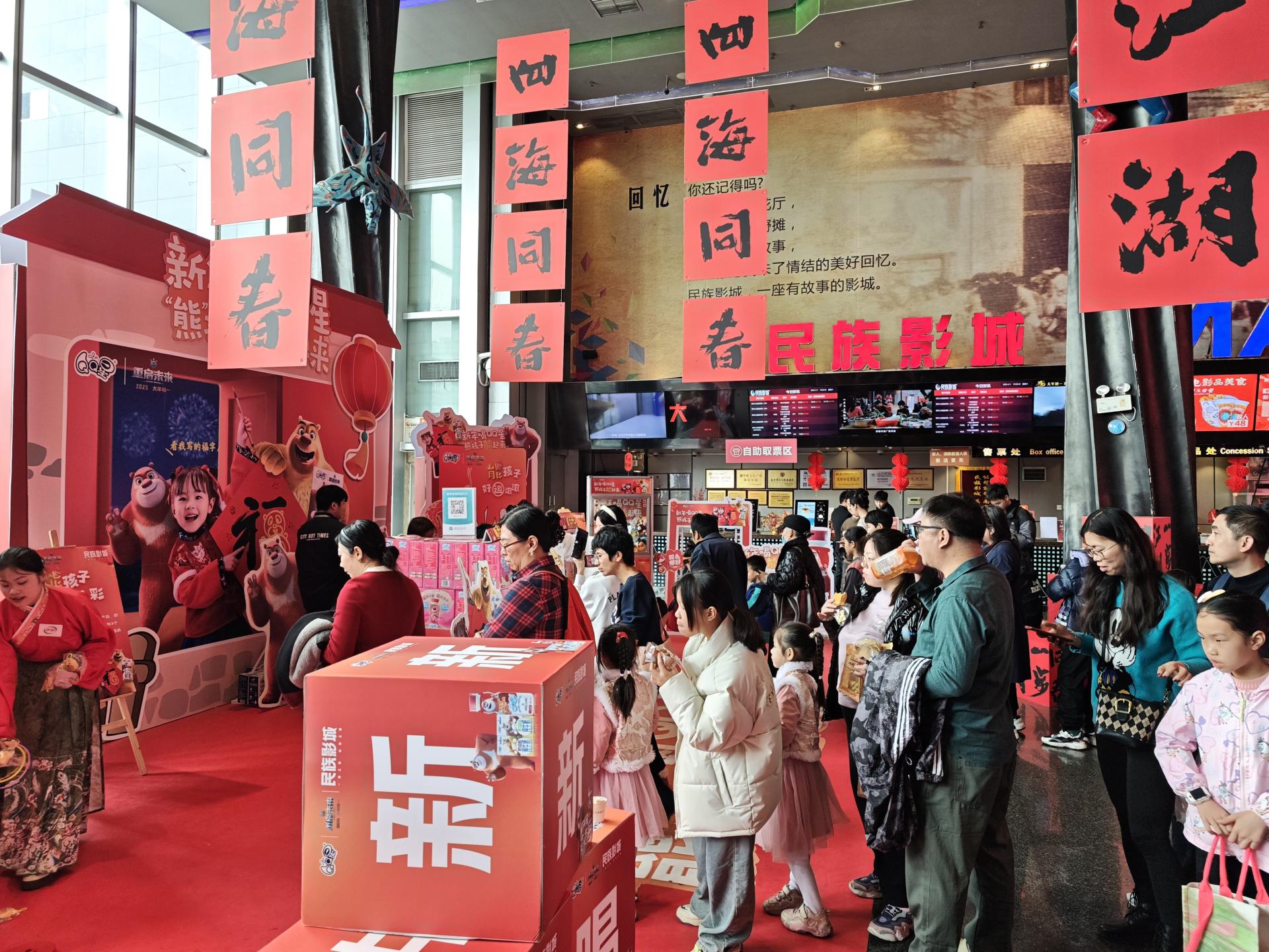 春節(jié)期間,民族影城三店積極開(kāi)展多元化活動(dòng),為觀眾帶來(lái)豐富的觀影體驗(yàn),同時(shí)提升了品牌影響力與經(jīng)濟(jì)效益。春節(jié)檔總觀影人次較去年同期增長(zhǎng)61.8%,票房收入同比提升86.8%。民族大道店表現(xiàn)尤為突出,在多個(gè)時(shí)間段內(nèi)位居南寧市乃至廣西票房榜首。特別是《射雕英雄傳》單片票房收入位居全國(guó)第十。美食促銷,觀影味蕾雙享受。春節(jié)期間,民族影城三店推出“跟著電影品美食”主題活動(dòng),通過(guò)售賣新春賣品套餐,與海底撈、云庭匯、鐘姐...