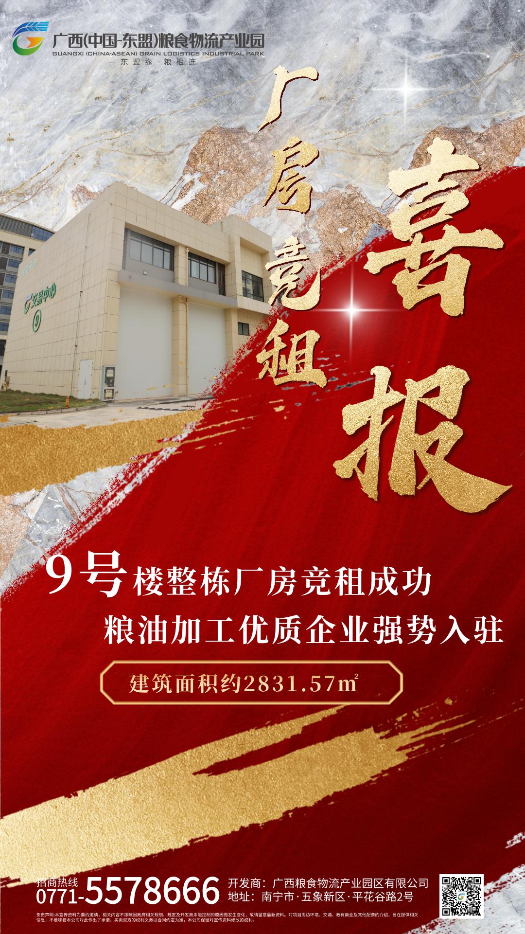 喜訊!廣西(中國(guó)-東盟)糧食物流產(chǎn)業(yè)園區(qū)9號(hào)樓整棟廠房成功競(jìng)租