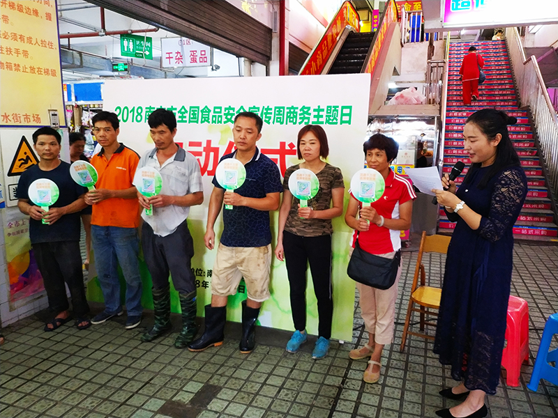 2018年7月27日,2018年南寧市全國食品安全宣傳周商務主題日啟動儀式在威寧市場公司經(jīng)營管理的水街市場和飛鳳市場舉辦,威寧市場公司積極配合主辦方開展了相關宣傳活動。