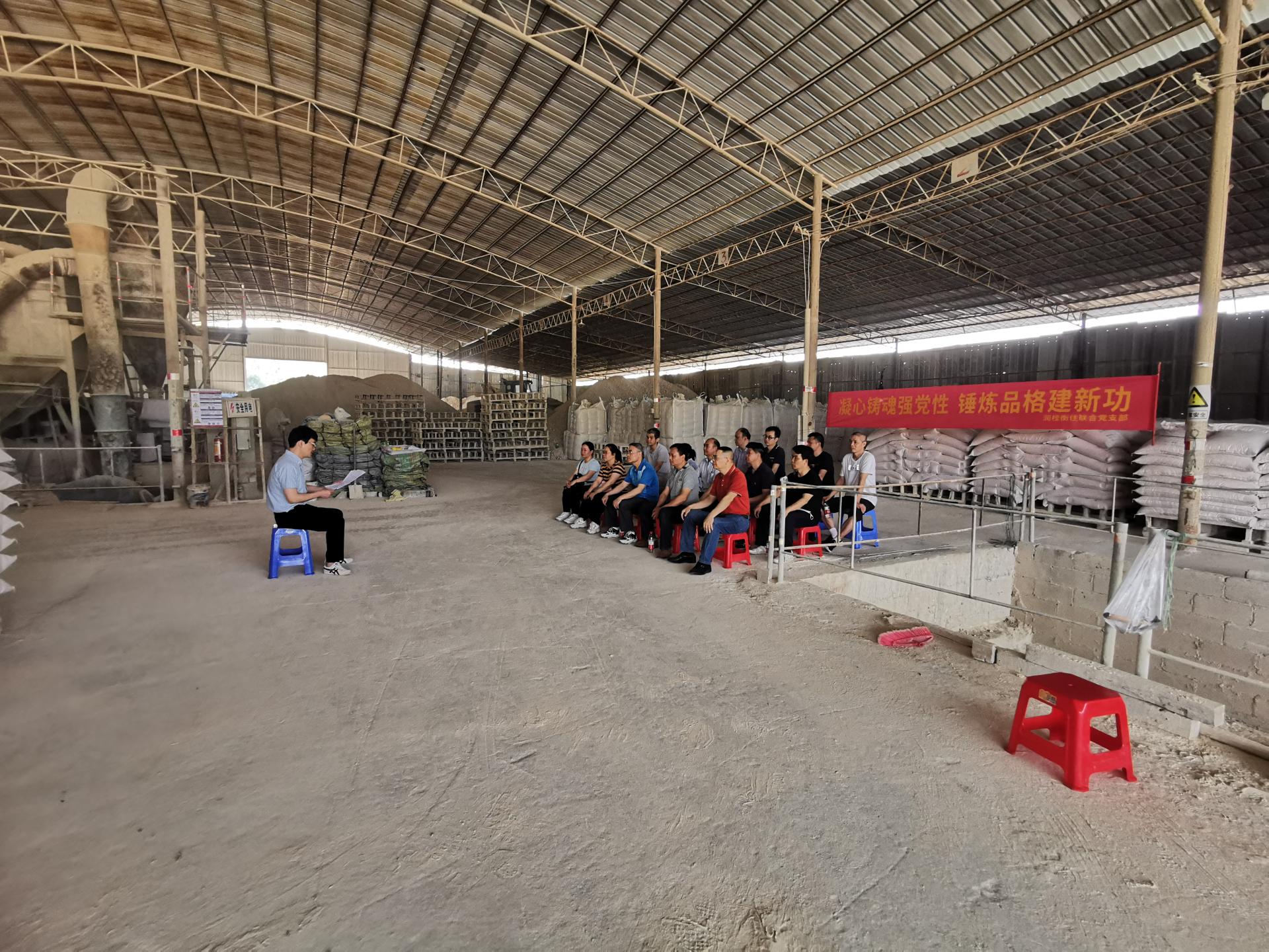 為強化公司黨建引領(lǐng)作用,深入推進黨建與生產(chǎn)工作緊密融合,近日,威潤聯(lián)合黨支部到桂泥公司經(jīng)營場所——壇淋加工廠上了一堂別開生面的現(xiàn)場黨課。在離市區(qū)幾十公里外的壇淋加工廠廠房內(nèi),公司黨員和礦產(chǎn)經(jīng)營部員工通力合作,拉橫幅、搬凳子、清理場地,很快在生產(chǎn)車間搭起了“接地氣”的臨時黨課學(xué)堂。威潤工貿(mào)公司聯(lián)合黨支部委員、副總...