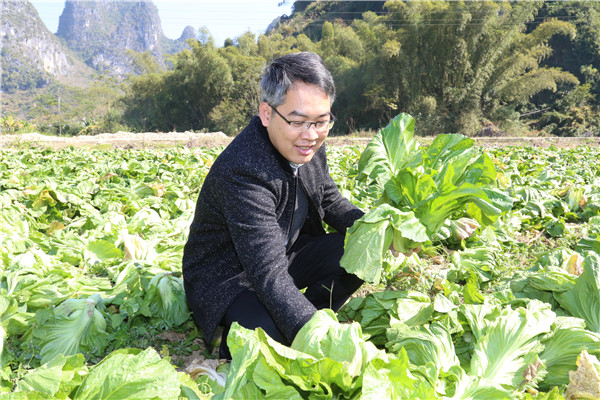 鄧江寧種植芥菜鄧江寧(左一)為云靈村爭取芥菜種植配套支持資金農民種菜,國企搭橋,農業(yè)公司提供技術指導和收購,在上林縣云靈村有一個“西燕云靈”注冊商標,小小的一棵芥菜,正朝著產業(yè)化、標準化發(fā)展。這是來自威寧房地產公司扶貧工作隊員——鄧江寧的好點子,他為了研究推廣產業(yè)扶貧新路,跑遍了云靈村的田間地頭,同事們都開玩笑稱他為“芥菜種植專家”。就是這樣一位半路出家的“專家”,讓云靈村的芥菜扶貧之路越拓越寬。