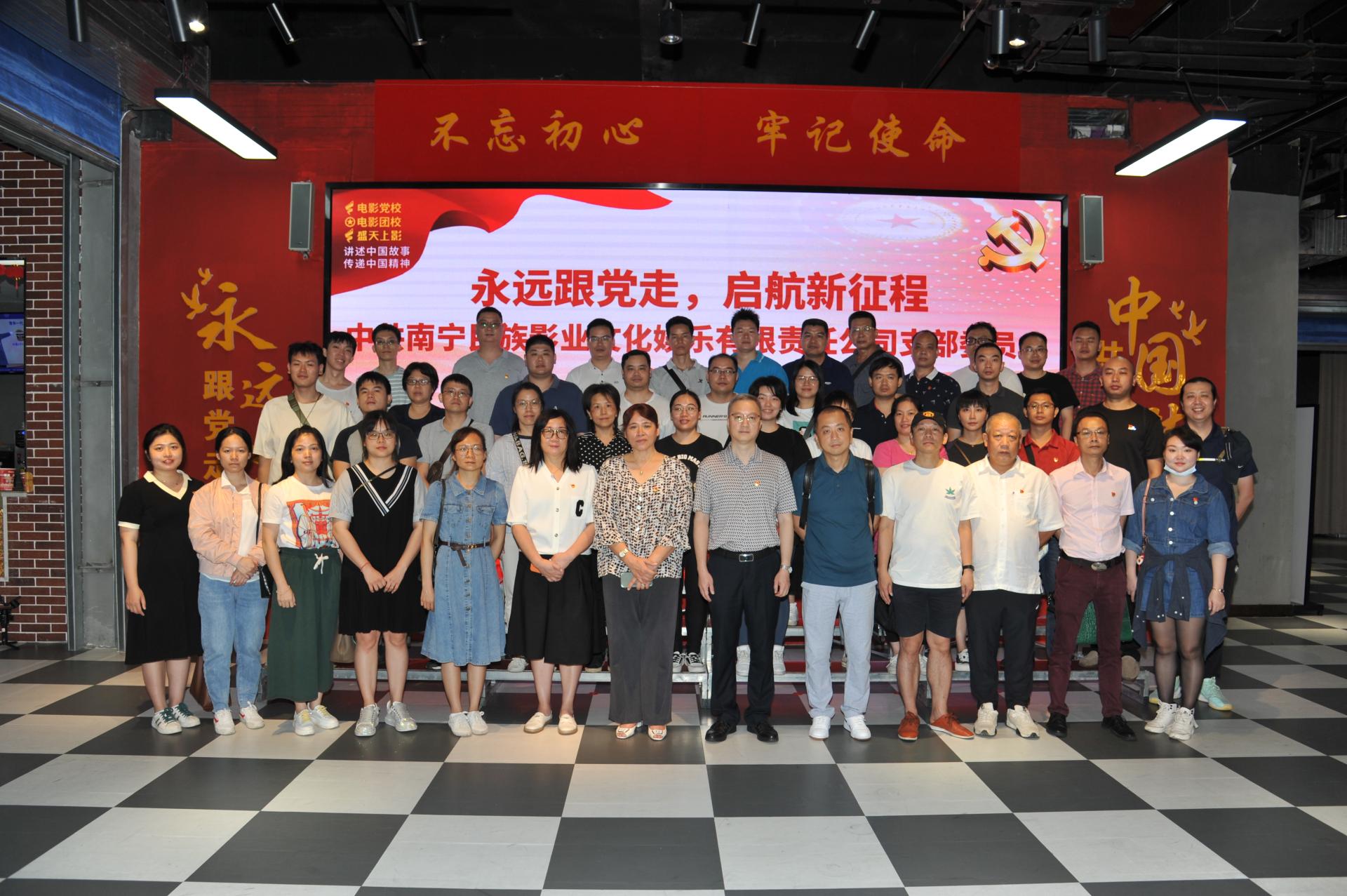 為了進一步創(chuàng)新黨史學(xué)習(xí)教育模式,打造濃厚的黨史學(xué)習(xí)氛圍,促使黨員干部職工從黨史中汲取智慧和精神力量,鑄牢中華民族共同體意識。南寧民族影業(yè)文化娛樂有限責(zé)任公司黨支部在2022年5月27日下午組織黨員前往南寧首家“鑄牢中華民族共同體意識主題影院”——廣西壯族自治區(qū)南寧經(jīng)濟技術(shù)開發(fā)區(qū)兩新領(lǐng)域電影黨校暨盛天上影電影黨建教育基地,開展“永遠跟黨走 啟航新征程”的紅色系列愛國主義教育活動?;顒邮紫?..
