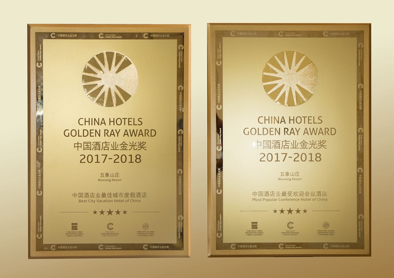 2018年4月21日,在2017-2018中國酒店業(yè)金光獎頒獎典禮上,南寧五象山莊一舉摘得“中國酒店業(yè)最佳城市度假酒店”和“中國酒店業(yè)最受歡迎會議酒店”兩項大獎。