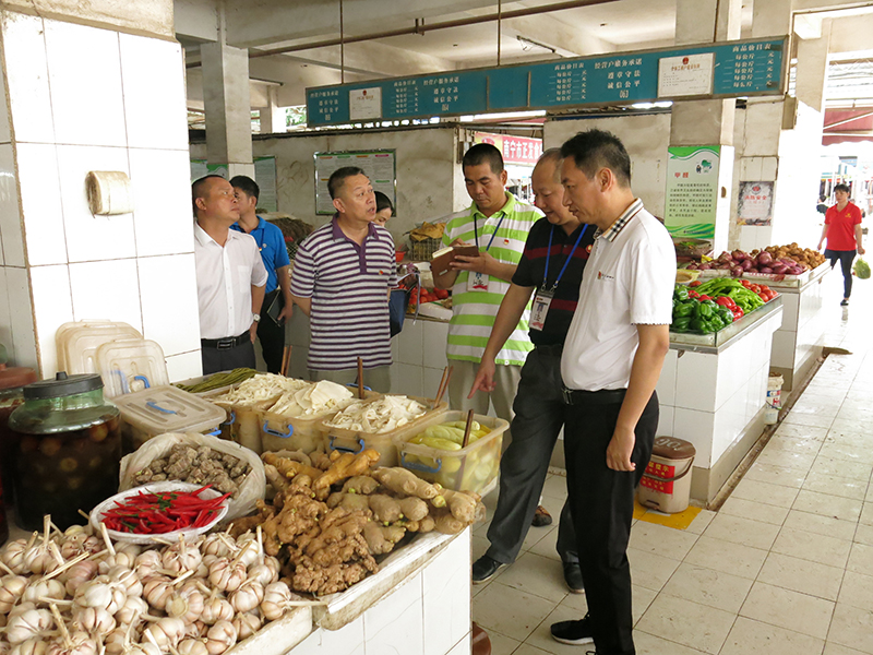 2018年6月12日,南寧威寧集團黨委副書記馬超毅、副總經(jīng)理黎鎮(zhèn)宇率督查組深入威寧市場公司經(jīng)營管理的邕寧商場、那元果菜市場,開展督查指導(dǎo)農(nóng)貿(mào)市場創(chuàng)衛(wèi)復(fù)審迎檢和安全管理工作。