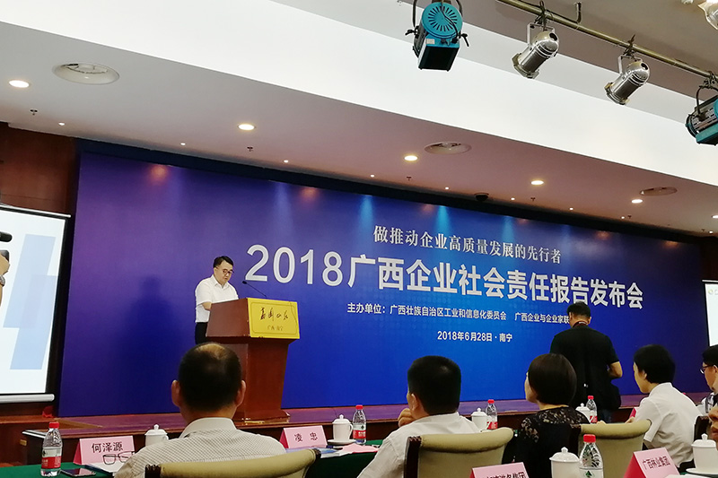 6月28日,自治區(qū)工業(yè)和信息化委員會、廣西企業(yè)與企業(yè)家聯(lián)合會在南寧舉行“2018廣西企業(yè)社會責任報告發(fā)布會”,廣西投資集團、南寧威寧集團等57家企業(yè)發(fā)布了2017年度社會責任報告,企業(yè)數(shù)量比上一年增加23家,創(chuàng)歷屆新高,南寧威寧集團連續(xù)三年參加發(fā)布會。